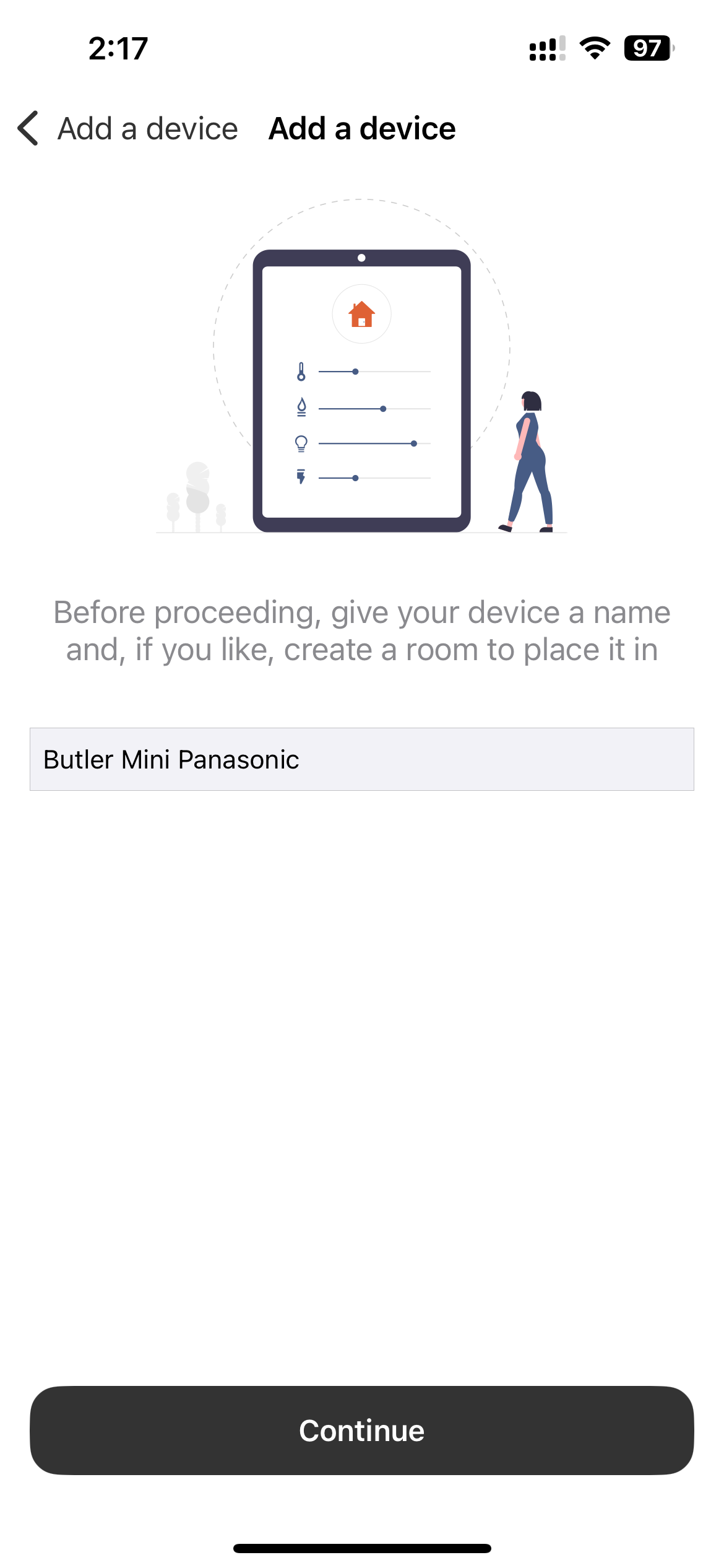 - In the app, tap Add a device. You may see a help screen for other device types — skip it for this step.