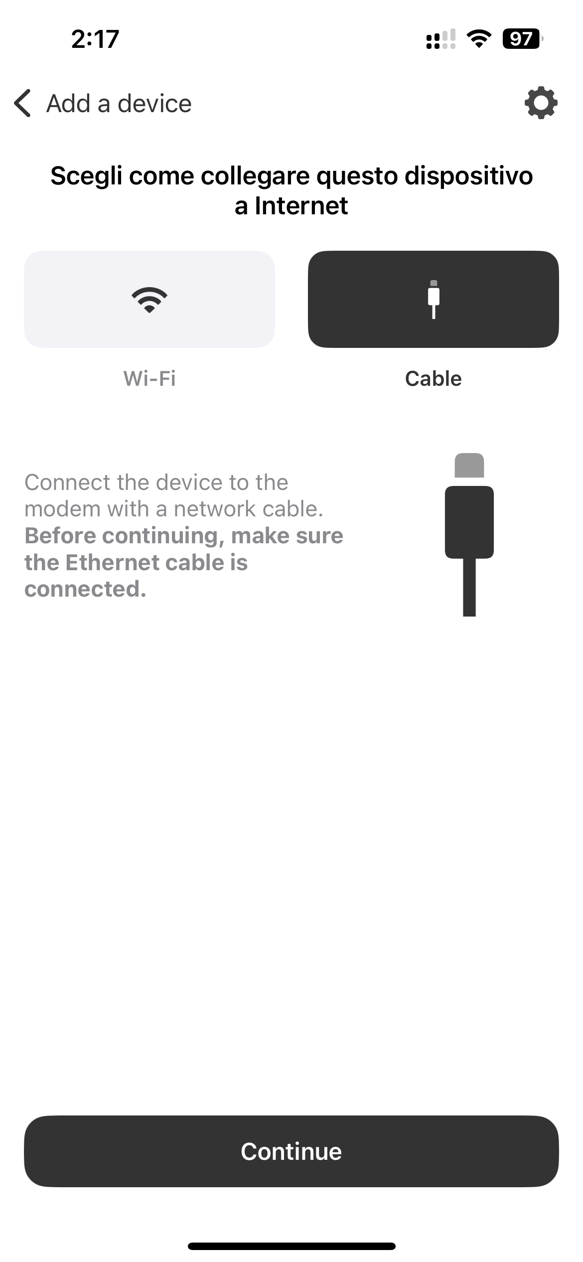 Choose between Wi-Fi or Ethernet for the Network Hub’s internet connection.