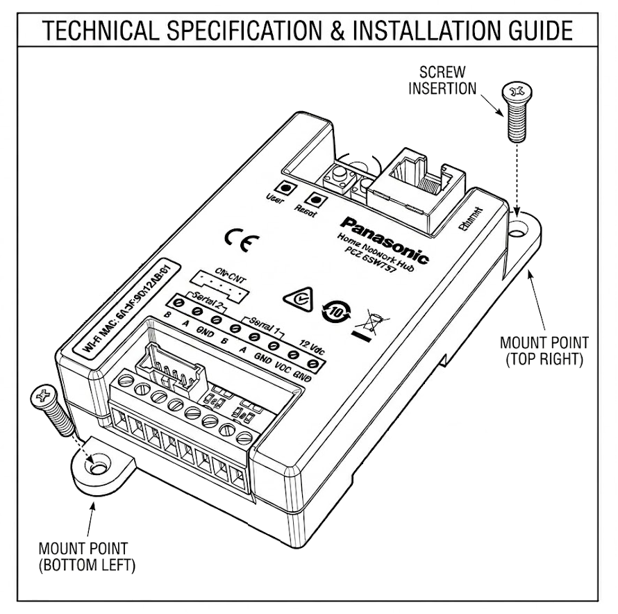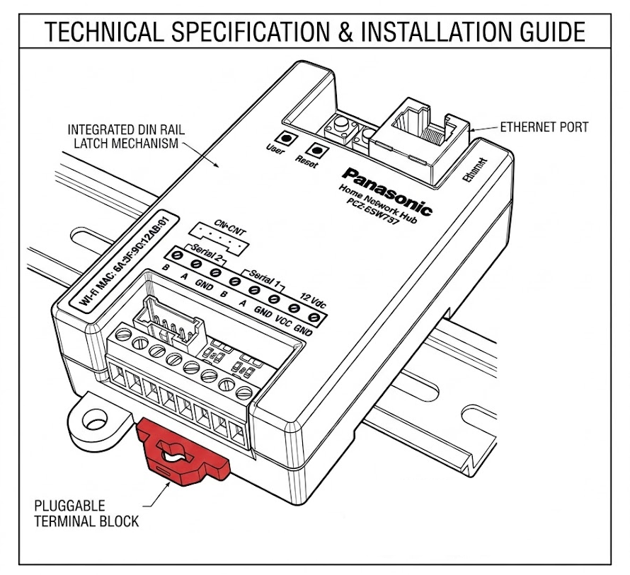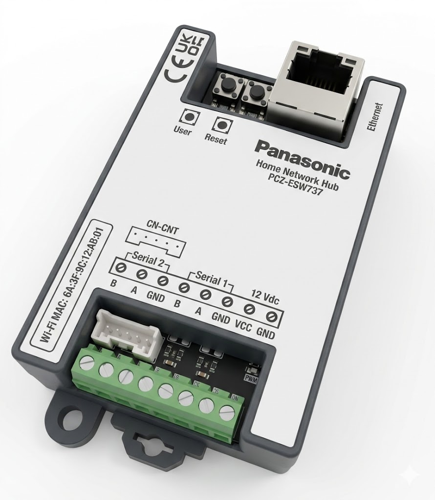 The Aquarea Home Network Hub is a compact gateway designed for indoor installation.