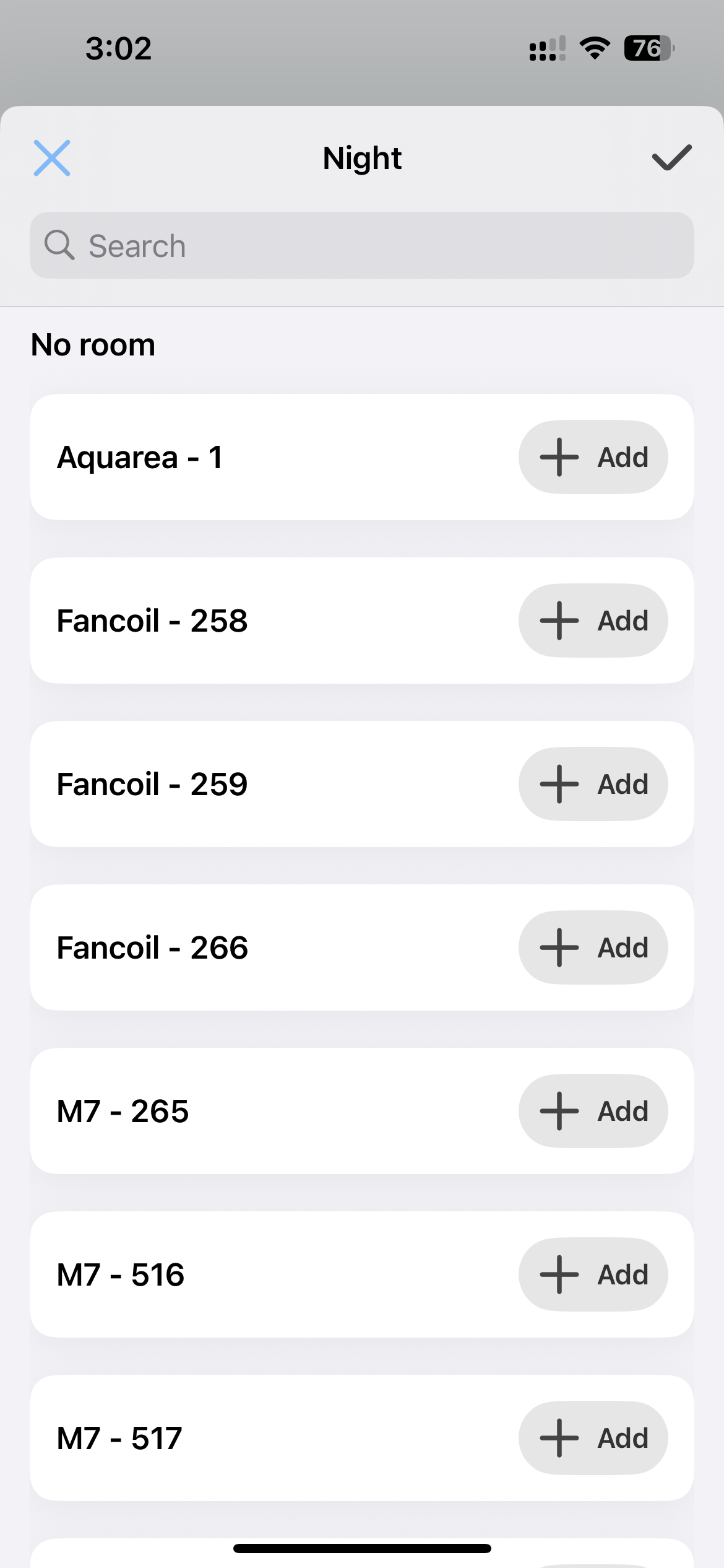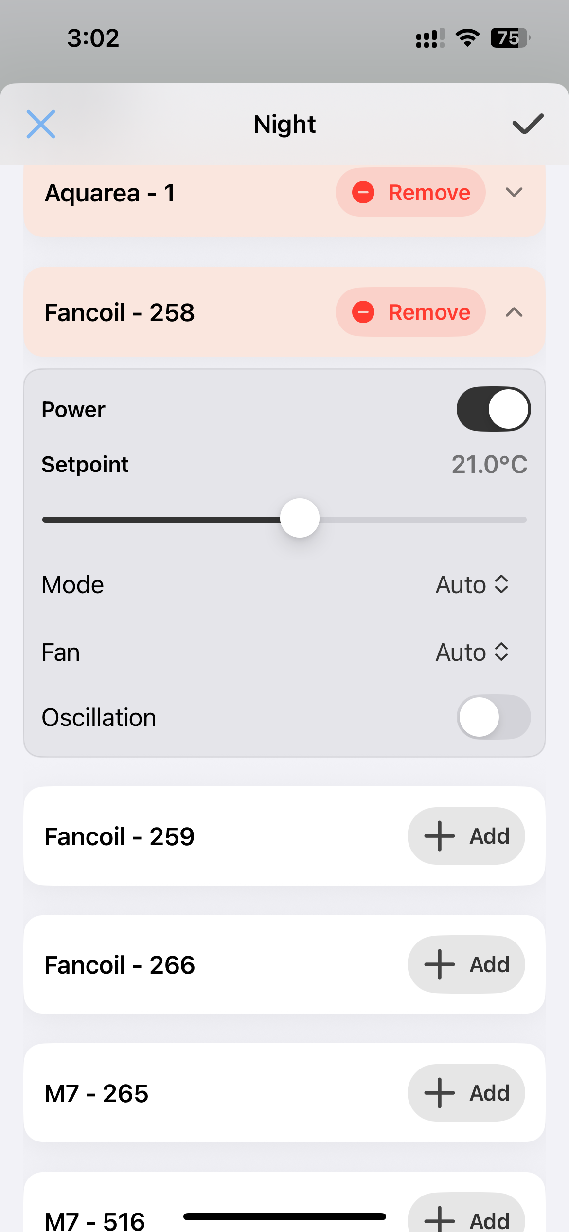 Tap on a preset to see the list of devices. Tap + Add next to a device to include it in the preset and configure its target settings.